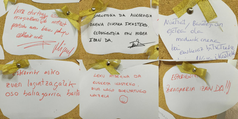 Alde batetik, momentu honetan Barnetegian dauden ikasleei galdetu genien, eta erantzuna emateko aukera, hain zuzen ere, atarian jarri dugun panelean izan dute, jarraian ikusiko duzuen moduan.